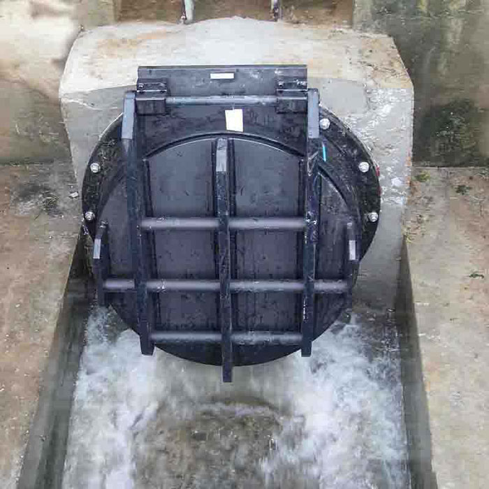 拍門(mén)是安裝在江河邊排水管出口的一種單向閥,當(dāng)江河潮位高于出水管口,且壓力大于管內(nèi)壓力時(shí),拍門(mén)面板自動(dòng)關(guān)閉。以防江河潮水倒灌進(jìn)排水管道內(nèi),防止汛情發(fā)生,對(duì)人身財(cái)產(chǎn)安全是一道重要保障!??!